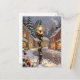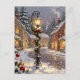 Send warm Christmas greetings to family and friends with this attractive postcard featuring a snowy village street and a festively decorated lamp post.