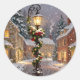Add a festive touch to your gift wrapping with this attractive sticker featuring a snowy village scene with a beautifully decorated lamppost.