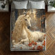 Snowy White Unicorn Winter Fairytale Castle Fleece Blanket