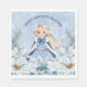 This adorable snowy winter Princess napkin features a beautiful young princess with Blonde hair wearing a blue and white snowflake gown and warm fur lined cape. The princess is surrounded by poinsettias. You can personalise with all the special birthday princess's name!