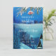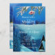 A Blue winter fantasy scene with a curly frame and freshly fallen snow in a winter wonderland design is easy to customise with your wording for the wedding couple or to change into a birthday invitation.