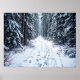 Snowy Winter Forest Path With Footprints Hiking Poster