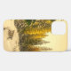 A phone case with a beautiful nature photograph. An isolated winter path with tall snow covered pine trees.