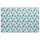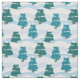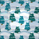 A forest of snow covered evergreen pine trees in a mountainous snowy landscape. The pattern repeats endlessly and is speckled with little snowflakes.