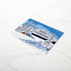 A foil Christmas card with a beautiful winter scene including snow covered mountains, evergreens and rustic cabin. The image and text can be personalised. You also have the option to delete the text. Original artwork by W.B.