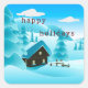 Snowy Winter Woods and Cabin "Happy Holidays" Cute Square Sticker