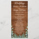 Wedding program. Rustic brown wood, snowing background and snowy forest. Cosy vintage country style. More items are available in this style in our store. You can edit the design further, change colours, fonts and add extra text by clicking "customise further" link.