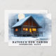 Snowy Winter Rustic Cabin in the woods at night with a beautiful FULL MOON shining with light pouring out of windows and the moon Barely shining from above. There a stream near by for winter fishing and peace fills the hearts of the lucky residents.