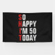 So Happy I'm 50 Today 50th birthday banner to use as party decor or as backdrop for dessert / buffet table decorations or photo booth. Change background colour, text colour, or age to personalise.