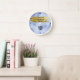 "So Much To Write". Faux blue suede round writer's office clock. Both text areas can be personalised. Perfect writer's gift.