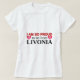 This design features the message, "I am so proud to be from LIVONIA", along with two pink and red hearts.