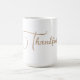 This "so thankful" mug is the perfect hostess gift this Thanksgiving. With its clean and simple design, it will tie with any decor. Faux gold glitter letters add a touch of glam.