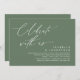Mark the beginning of your forever with elegance using our romantic contemporary rustic sage green greenery theme wedding elopement happily ever after lunch, brunch, reception dinner party celebration invitation card, "Celebrate with us". Perfect for couples extending their joyous occasion, this invitation exudes sophistication with a hint of playfulness, setting the stage for a memorable event. Adorned with a timeless modern script design theme, it adds a touch of refined charm to your festivities. Crafted by TeeshaDerrick, this invitation promises to beautifully capture your love story.