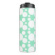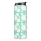 This thermal bottle has a mid-century modern design of white circles of varying sizes on a field of pale green. If you like the design but prefer different colours, message me.