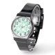 This women's watch has a mid-century modern design of white circles of varying sizes on a field of pale green. If you like the design but prefer different colours, message me.