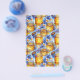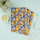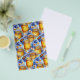 A floral soap wrapping sheet featuring jars of honey and blue and white flowers.