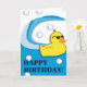Rubber duck in it's natural environment is ready to share birthday greetings with your recipient. Blank inside is ready to hold your own personal message at no extra charge.