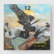 Beautiful nature designed clock of an eagle soaring over mountains and checking on her babies. This awesome designed clock will go great in any room.