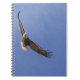 An adult bald eagle in a sharp turn highlighted by a blue sky.