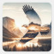 Soaring Bald Eagle Over Mountain Valley Lake Square Sticker