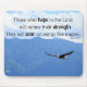 This religious design is extremely inspirational. It features photography of a soaring eagle with a beautiful landscape of mountains and sky. The text is from the Bible verse Isaiah 40:31 and says "Those who hope in the Lord will renew their strength. They will soar on wings like eagles." Perfect gift idea for a Christian, Godchild, pastor, priest or Godparent. Click the "Customise it" button to add additional text and/or photos.