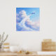 Artwork of a plane soaring through cloudy skies in a pastel painting style. This uplifting artwork depicts a soaring airplane cutting through a sea of fluffy, sunlit clouds, leaving a sweeping contrail in its wake. The soft, pastel-toned palette of cerulean blues, bright whites, and subtle blush pinks creates a sense of endless optimism and freedom. Whether you are an avid traveler, an aviation enthusiast, or simply looking to inspire someone to "dream big," this piece adds a breath of fresh air and a spirit of wanderlust to any room. It is beautifully suited for a home office, a bright living space, or an adventurer's nursery.