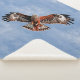 A graceful red kite in flight against a cloudy summer sky. Customise by adding your own text