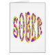 Purple, pink, yellow and green swirl design stylised letters form the word Sober in this 60’s inspired Retro graphic