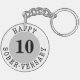 This 2” acrylic key chain features a placeholder for the number of sobriety years with the words, "happy sober-versary," in circular black letters on a white and grey background.