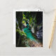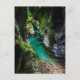 Photo postcard of Tolmin Gorge with moss covered steep cliffs and magnificent blue water in Soca Valley, near Kobarid in Slovenia.