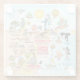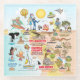 Bright and colourful scene offers a spectacular view of Southern California - wacky characters frolic on the beach and desert of SoCal showcasing Los Angeles, Orange County, San Diego, Santa Barbara, Riverside, Palm Springs, El Centro, Salton Sea, Anza Borrego and Joshua Tree parks as well as the border cities of Tijuana, Tecate and Mexicali. This charming scene has it all – a surfer hangs ten while a killer whale leaps out of the water, zoo animals smile for the camera, wine lovers make a toast as a hiker is noticed by a UFO and much more…