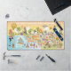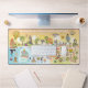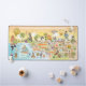 Bright and colourful scene offers a spectacular view of Southern California - wacky characters frolic on the beach and desert of SoCal showcasing Los Angeles, San Diego, Orange County, Santa Barbara, Riverside, Palm Springs, Palm Desert, El Centro, Arrowhead Lake and Big Bear and Anza Borrego and Joshua Tree parks as well as the border cities of Tijuana, Tecate and Mexicali. This charming scene has it all – a surfer hangs ten while a killer whale leaps out of the water, zoo animals greet the tourists, a muscular beach couple both flex to impress as a T-Rex roars a challenge and a tank moves into position and much more…