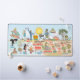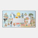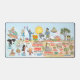 Bright and colorful scene offers a spectacular view of Southern California - wacky characters frolic on the beach and desert of SoCal showcasing Los Angeles, San Diego, Orange County, Santa Barbara, Palm Springs, Palm Desert, El Centro, Arrowhead Lake and Big Bear and Anza Borrego and Joshua Tree parks as well as the border cities of Tijuana, Tecate and Mexicali. This charming scene has it all – a surfer hangs ten while a killer whale leaps out of the water, zoo animals greet the tourists, a posh couple celebrate with a toast, an alien examines a hiker and much more!