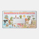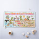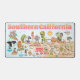 Bright and colourful scene offers a spectacular view of Southern California - wacky characters frolic on the beach and desert of SoCal showcasing Los Angeles, San Diego, Orange County, Santa Barbara, Riverside, Palm Springs, Palm Desert, El Centro, Arrowhead Lake and Big Bear and Anza Borrego and Joshua Tree parks as well as the border cities of Tijuana, Tecate and Mexicali. This charming scene has it all – a surfer hangs ten while a killer whale leaps out of the water, zoo animals greet the tourists, a muscular beach couple both flex to impress as a T-Rex roars a challenge and a tank moves into position and much more…
