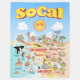 Bright and happy scene - a cartoon map view of Southern California - charming characters enjoy the warm SoCal sun - Los Angeles, San Diego, Anaheim, Santa Barbara, Riverside, Palm Springs and El Centro are featured - Anza Borrego Desert State Park and Joshua Tree National Park are included as well as the border cities of Tijuana, Tecate and Calexico in Mexico.