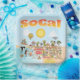 Bright and colourful scene offers a spectacular view of Southern California - wacky characters frolic on the beach and desert of SoCal showcasing Los Angeles, San Diego, Orange County, Santa Barbara, Riverside, Palm Springs, Anza Borrego and Joshua Tree parks as well as the border cities of Tijuana, Tecate and Mexicali. This charming scene has it all – a surfer hangs ten while a killer whale leaps out of the water, zoo animals greet the tourists, a muscular fellow flexes to impress as a T-Rex roars a challenge and a tank moves into position and much more…