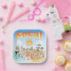 Bright and colourful scene offers a spectacular view of Southern California - cute characters enjoy the warm California sun showcasing Santa Barbara, Los Angeles, San Diego, Riverside, Palm Springs, Orange County and El Centro with Anza Borrego and Joshua Tree parks as well as the border cities of Tijuana, Tecate and Mexicali. This charming scene has it all – a surfer hangs ten, a killer whale leaps out of the water, zoo animals greet the tourists, a muscular beach couple flex to impress as a T-Rex roars a challenge and a tank moves into position and much more…