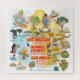 This bright and colourful scene offers a spectacular view of Southern California - wacky characters frolic on the beach and desert of SoCal showcasing Los Angeles, Orange County, San Diego, Santa Barbara, Palm Springs, El Centro, Beverly Hills, Laguna Beach, La Jolla, Anza Borrego, and Joshua Tree parks as well as the border cities of Tijuana, Tecate, and Mexicali. This charming scene has it all – a surfer hangs ten while a killer whale leaps out of the water, a hiker is noticed by a UFO, and much more…