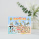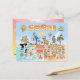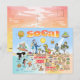 Bright and colourful scene offers a spectacular view of Southern California - wacky characters frolic on the beach and desert of SoCal showcasing Los Angeles, Orange County, San Diego, Santa Barbara, Riverside, Palm Springs, El Centro, Anza Borrego and Joshua Tree parks as well as the border cities of Tijuana, Tecate and Mexicali. This charming scene has it all – a surfer hangs ten while a killer whale leaps out of the water, zoo animals greet the tourists, wine lovers make a toast as a T-Rex roars a challenge and a hiker is noticed by a UFO and much more…