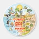 A whimsical cartoon of Southern California - classic characters enjoy the warm California sun that shines high above it all.