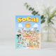 Colourful view of Southern California - wacky characters frolic on the beach and desert of SoCal showcasing Los Angeles, Santa Barbara, San Diego, Riverside, Palm Springs, Anaheim, Anza Borrego and Joshua Tree parks - also the border cities of Tijuana, Tecate and Mexicali. This SoCal map has it all – a surfer hangs ten while a mermaid lounges on a rock, a killer whale leaps out of the water, zoo animals greet the tourists, a muscular beach couple both flex to impress as a T-Rex roars a challenge and a tank rumbles into position and much more…