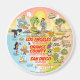 A whimsical cartoon of Southern California - classic characters enjoy the warm California sun that shines high above it all.