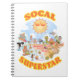 Bright and colourful scene offers a sweet view of Southern California - cute characters enjoy the warm California sun showcasing Los Angeles, San Diego, Anaheim and Palm Springs and also Anza Borrego and Joshua Tree parks plus the border city of Tijuana. This charming scene has it all – a surfer hangs ten while a mermaid lounges on a rock, a killer whale leaps out of the water, a muscular beach couple both flex to impress as a T-Rex roars a challenge and a tank moves into position and much more…