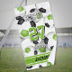 This team spirit hand towel for a soccer player features easy-to-personalise athlete name and jersey number plus team & mascot name overlying the background image of a bunch of randomly arranged bright green, black and white soccer balls on a white background. The soccer balls are selectively shaded, giving them a 3D appearance. The athlete's name can be personalised on horizontal green varsity stripes at the bottom edge of the towel - by katz_d_zynes