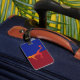 I was happy with the acrylic tag but it came with a thin leather strap to attach the tag to luggage (like a cat collar). I replaced the strap with a metal ring off of a key ring as the leather strap would come undone or break easily as luggage is sometimes handled without much care by airlines. Printing is great. Colours and positioning of the design I put on the tag were perfect. Very pleased.