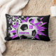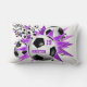 Girls' soccer star lumbar pillow with explosion of soccer balls and purple and pink star shapes on a customisable black background - personalise with her name and jersey number ~ katz_d_zynes