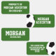 This soccer-themed clothing label features a green turf background and room for name and contact info. Perfect for kids, tweens, teens and adults to label athletic gear, team uniforms or any other clothing.