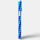 Custom soccer fan iPhone case, with graphics of a blue and aqua dot pattern background. Graphics of a soccer ball decorates the bottom right corner of the case and custom black text, on the bottom, is ready to personalise. Great case for the sports fan or soccer player.