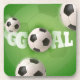 Soccer balls (footballs) in motion on a green background with white lettering "GOAL".