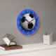 Great artwork and photography give thus clock the optical illusion of a soccer ball having been kicked or thrown into the clock itself. With bright blue numbers and red minute markers, this clock is ready for the soccer enthusiast!